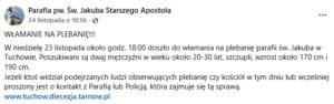 Również parafia, jak i policja apelują do mieszkańców Tuchowa i okolic o pomoc w identyfikacji sprawców.